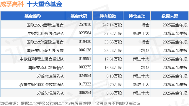 根据2025基金年报公募基金重仓股数据,重仓该股的公募基金共9家,其中持有数量最多的公募基金为国联安基金的国联安小盘精选混合。国联安小盘精选混合目前规模为8.91亿元,最新净值1.135(2月24日),较上一交易日上涨2.53%,近一年上涨26.84%。该公募基金现任基金经理为邹新进。邹新进在任的基金产品包括:国联安价值优选股票,管理时间为2018年9月20日至今,期间收益率为138.23%;国联安添利增长债A,管理时间为2019年12月31日至今,期间收益率为44.46%;国联安价值甄选混合,管理时间为2024年5月14日至今,期间收益率为34.52%。